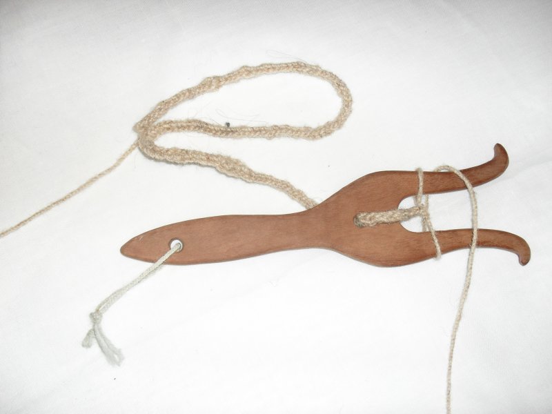 Slutligen användes "påtdockor", med minst fyra "horn". Den snodden blir åtta gånger starkare än garntråden och de snoddarna passar bra till att snöra åt kläder med.