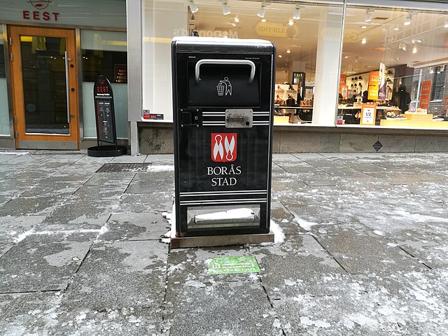 https://commons.wikimedia.org/wiki/File:Trashcan_outside_McDonalds_in_Bor%C3%A5s.jpg av Ingemar Wiklund med Creative Commons Attribution-Share Alike 4.0 International licens.